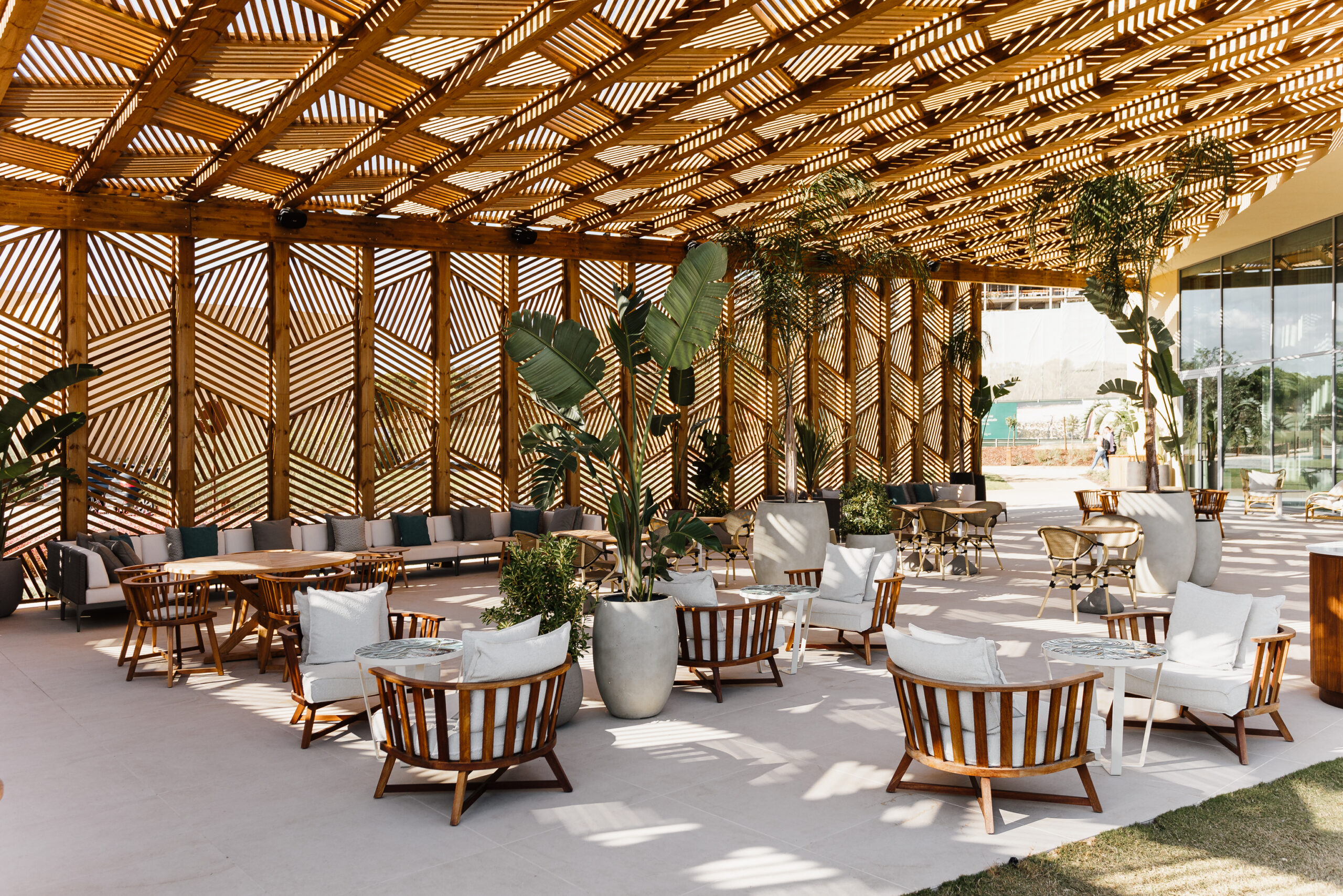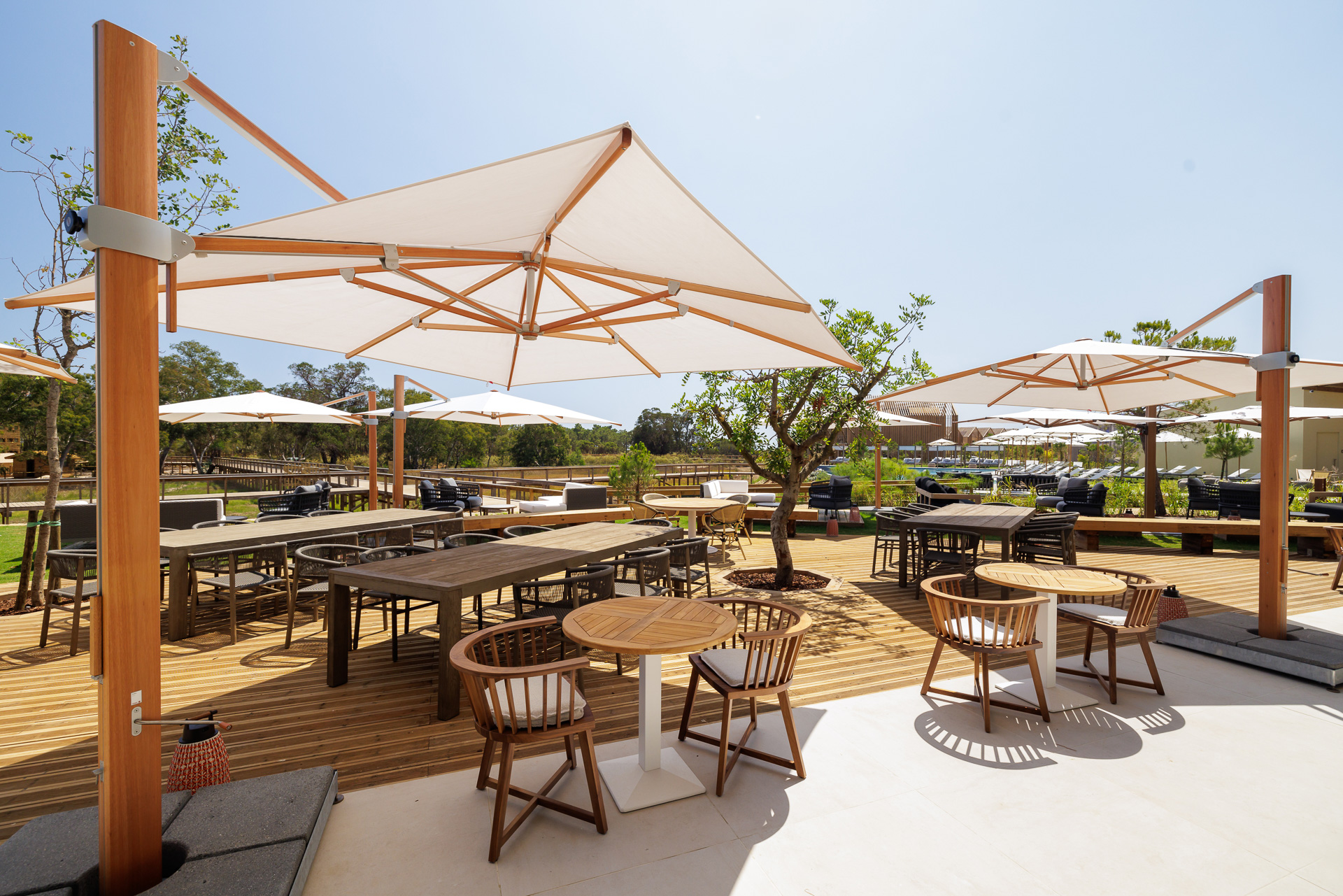 No projeto de exteriores do Verdelago Resort, escolhemos mobiliário que valoriza o espaço e garante conforto aos utilizadores. Rodeado pela natureza, o resort conta com mesas e cadeiras de várias dimensões, ideais para diferentes momentos sociais. As marcas Ethimo, Soho, Pedrali, Diphano e Gescova oferecem qualidade, durabilidade e perfeita integração com o ambiente. Para sombra e bem-estar nas áreas descobertas, incluímos chapéus de sol Jardinico, que se harmonizam com a envolvente natural.